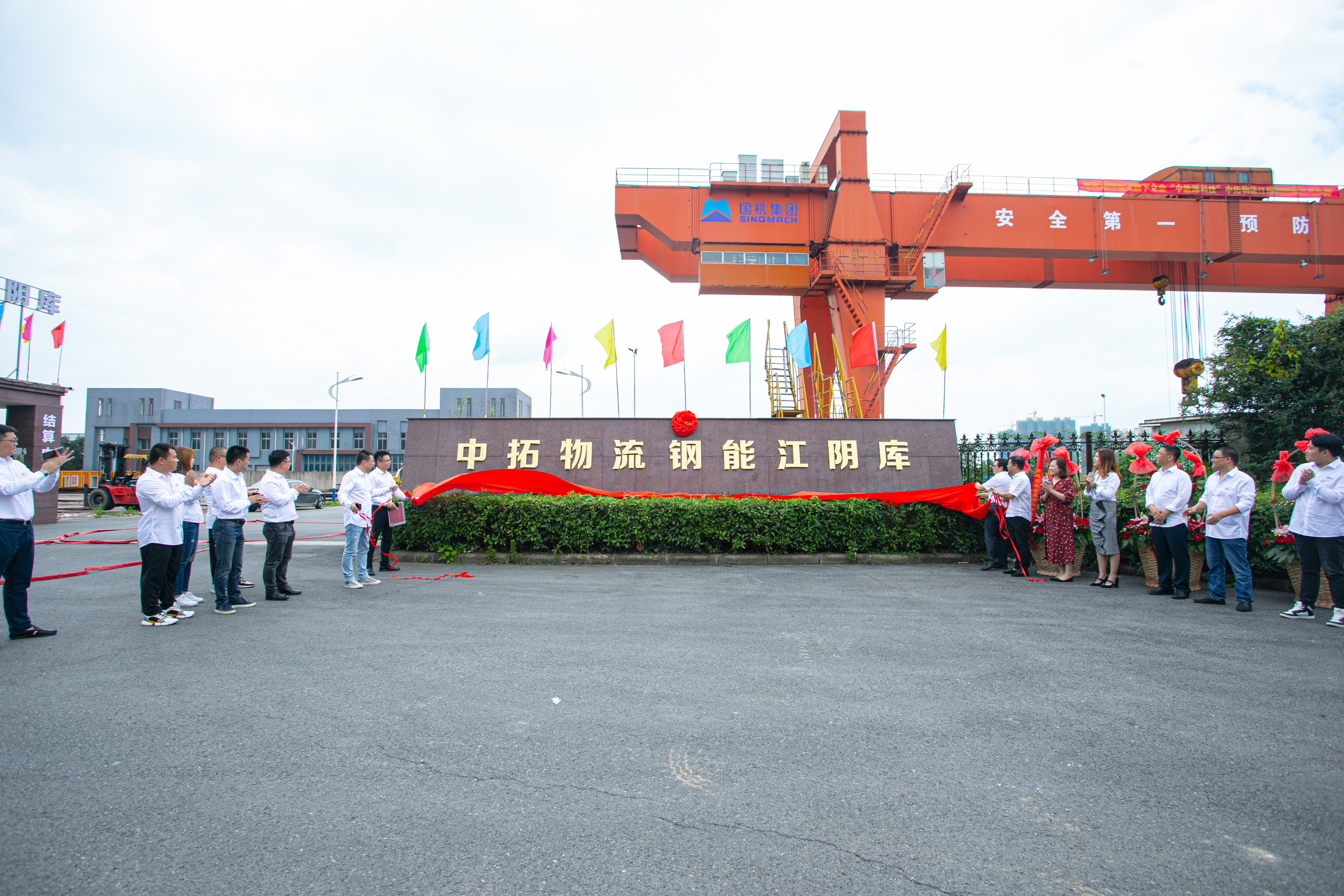 活動(dòng)現(xiàn)場(chǎng)秋風(fēng)送爽、花籃錦簇。伴隨著喜慶的禮花,120噸行車吊機(jī)緩緩攀升駛來(lái)。各級(jí)領(lǐng)導(dǎo)和各界嘉賓共同為“江蘇江陰鋼能庫(kù)”揭牌。本次揭牌儀式標(biāo)志著科技股份公司又一個(gè)有著三萬(wàn)噸庫(kù)容能力,集鋼鐵貿(mào)易、倉(cāng)儲(chǔ)、配送、金屬加工、商務(wù)服務(wù)于一體的綜合性倉(cāng)儲(chǔ)基地正式對(duì)外運(yùn)營(yíng)。