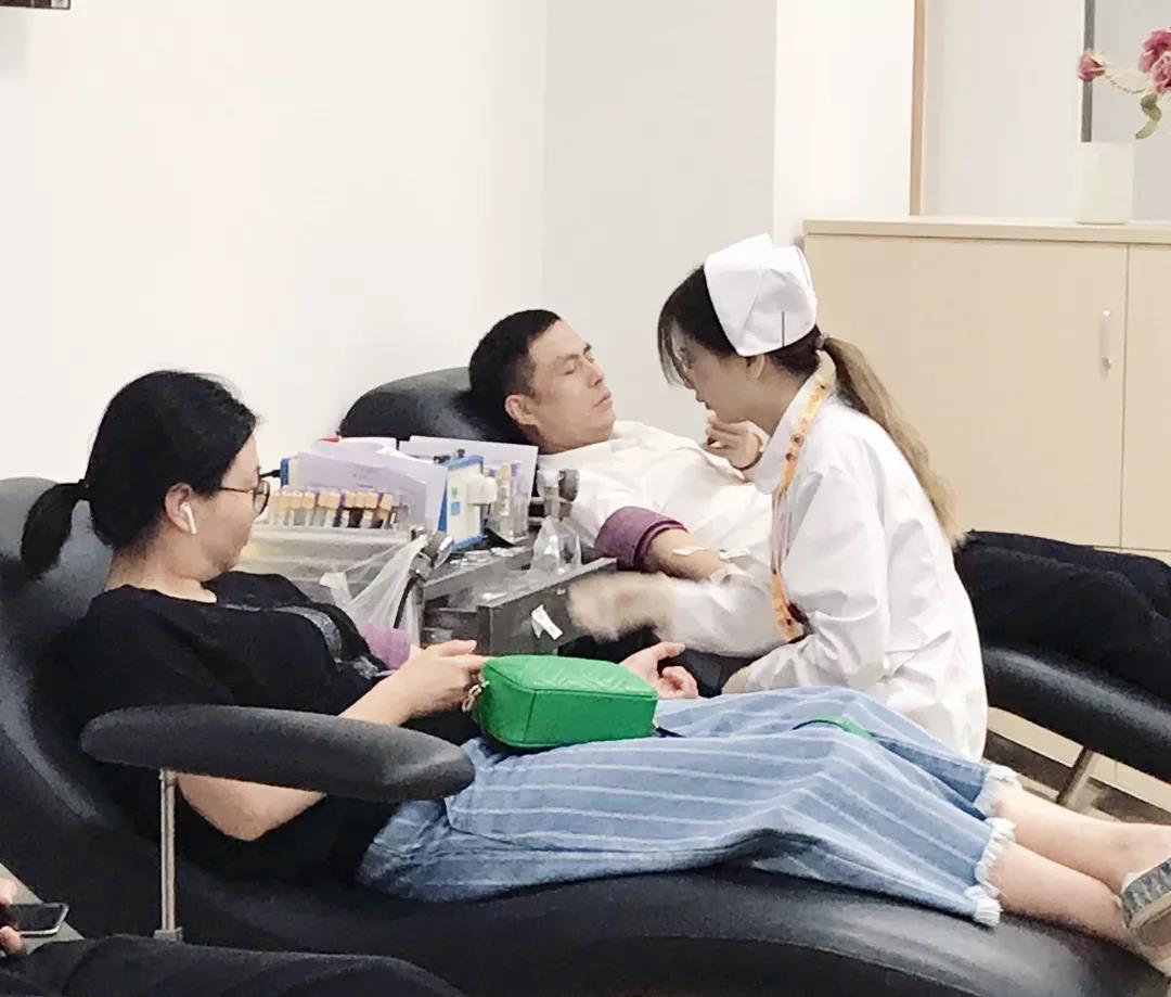 志愿者們到達新華醫院獻血點,在工作人員的引導下,填表、體檢,向急需輸血救治的病人,傳遞一份份“紅色”正能量,為生命續航。
